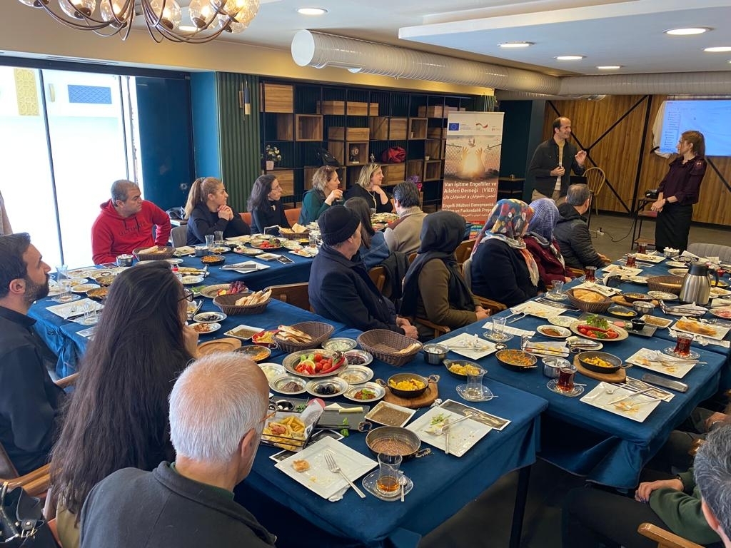 VİED tarafından bir süredir yürütülen “Engelli Mülteciler İçin Eğitim Danışmanlık ve Farkındalık Projesi” kapsamında İki Nisan Caddesi’nde bulunan Kafe 432’de farkındalık eğitimi verildi. Eğitime, VİED Yasal Temsilcisi Filiz Yörükoğlu, Proje Koordinatörü İlkay Gökdere, derneğin yönetim kurulu üyeleri, çalışanları ve Van’da bulunan Afganistan ile İran’dan gelen engelli mülteci ve aileleri katıldı.